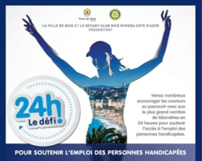 This Friday, May 3 at 4:45 PM will see the start of the “24H Challenge” race, organized by the city of Nice and the Rotary Nice Riviera Cรดte dโAzur on the Promenade des Anglais (at the level of the Centenary Beach). The goal of this event: through a sports challenge, to openly discuss disability and work.
