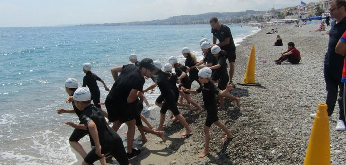 In total, nearly 500 children (480 to be exact) spent their afternoon on the Promenade des Anglais for a day like no other, with a program featuring a triathlon consisting of 20 meters swimming in the sea, followed by 1 km of mountain biking and 250 meters of running. They also visited the Prevention and Health village, where there were workshops on safety skills with the Nice Municipal Police, nutrition with the Health Department, road safety, and children’s rights.