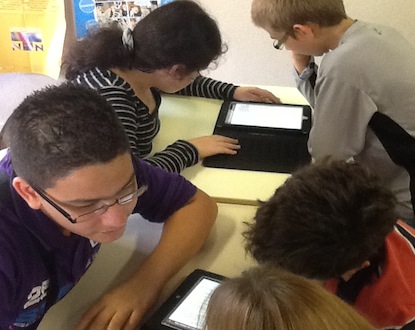 This 5th-grade class includes five blind children. This new system allows them complete freedom in their creativity. Indeed, the tablets are all equipped with pioneering technology. Thanks to “voice over,” the web pages are read to them, allowing them to navigate with ease. This system is complemented by a BrailleSense box, a portable personal assistant, which enables them to transcribe texts into Braille. The students can then write articles that will be read by everyone.