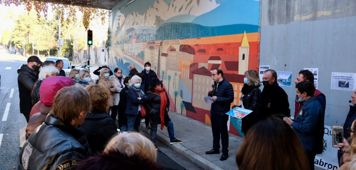 Bailet (Deputy Mayor in charge of Civil Status and territory) and Robert Roux (Deputy Mayor in charge of Culture) gathered to inaugurate a mural painted under the Fabron bridge.