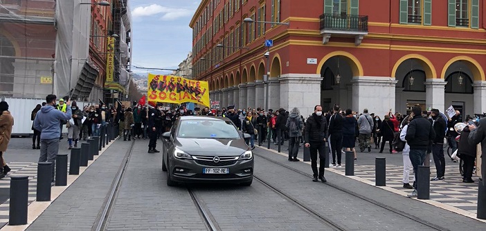 Right now, it’s the security law (under discussion in Parliament) that’s in their sights. Tomorrow, who knows… as they say, if you search, you’ll eventually find something! With a bit of imagination, we should be able to get there! Yesterday, there were between 300 and 500 of them strolling along the usual route, Thiers station, Place Massรฉna, Promenade du Paillon, Place Garibaldi.