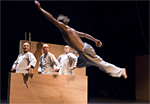 Laws of gravity, induced thrills, zen atmosphere, suspense, and increasing humor, “pas perdus” joyfully mixes acrobatics, humor, and carpentry in an aesthetic, playful, and judicious staging. Versatile, the artists multiply feats, juggle, play the violin, electric guitar, saxophone, and clarinet to end in a comical concert.