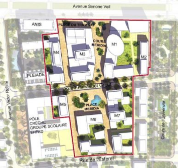 Joia Méridia, a new center that will expand over 73,500m² GFA, will include 75% housing, 12% hospitality and parahospitality, 10% retail and local services, 3% office spaces, and a central parking area with at least 1,200 spaces, of which a minimum of 700 spaces will be shared and accessible to the public.