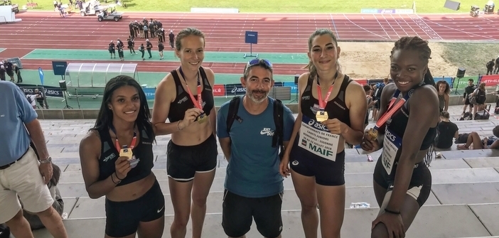 Finally, under the guidance of Franck Nรฉ at the regional pole in Marseille, she concluded these championships in the best way possible, securing the 4ร100 m relay for NCAA far ahead of her rivals. With a time of 45″98, Mandana Vouillemin, Emma Montoya, Camille Seri, and Sacha Alessandrini not only seized the national crown but also broke the championship record, which dated back to 1996!
