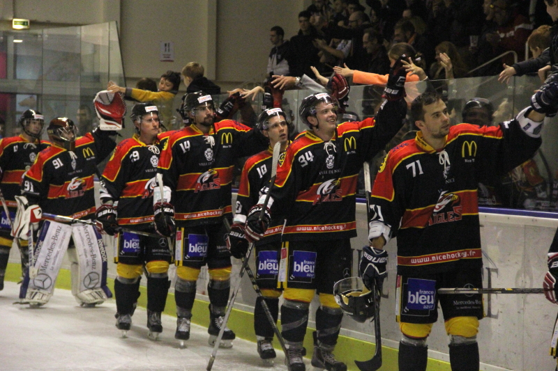 Now, it’s no laughing matter. It’s playoff time for Nice Hockey, the third-place finisher in the regular season (34 points with 16 wins and 8 losses), achieving the clubโs goal. A nearly perfect first half of the season with a leading position for a few days, followed by a more challenging sequel with disappointments like the defeat against Tours (3-6).