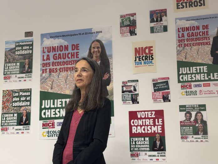 Right from the start, Juliette Chesnel-Le Roux sets the tone. With a touch of humor, the lead candidate declares: “I commit to starting punctually, unlike Christian Estrosi who always starts half an hour late.” A touch of humor that introduces a dense, collective, and firmly political conference. So far, three leaders have been highlighted. On this occasion, the candidate wanted to broaden the context. “Today, I wanted to discuss other candidates who illustrate the diversity of our list. Because we represent the merging of the left and ecologists.” Without revealing the full list of 69 candidates, Juliette Chesnel-Le Roux emphasizes the diversity of the team: political parties (PS, PCF, Ecologists, L’Après), trade unionists, field professionals, and association activists. “Civil society is all of us, through our activism.” Civil servants, teachers, healthcare workers, entrepreneurs, nurses, an oceanographer, or a lawyer: Unis pour Nice claims a diversity of backgrounds and skills, viewed as an asset for governance. Julien Picot, a territorial civil servant and activist in popular zones, is the first to speak, presenting suggestions on mobility. “As soon as we take office, we will implement free transportation to ensure access for all residents of Nice.” Declared aims: to increase purchasing power and improve air quality. The candidate criticizes the lack of action from the current majority in various areas. “Unlike the right of Christian Estrosi, who has promised a tramway to Ariane for over 25 years, we want its implementation without delay. The residents of Ariane are not second-class citizens.”