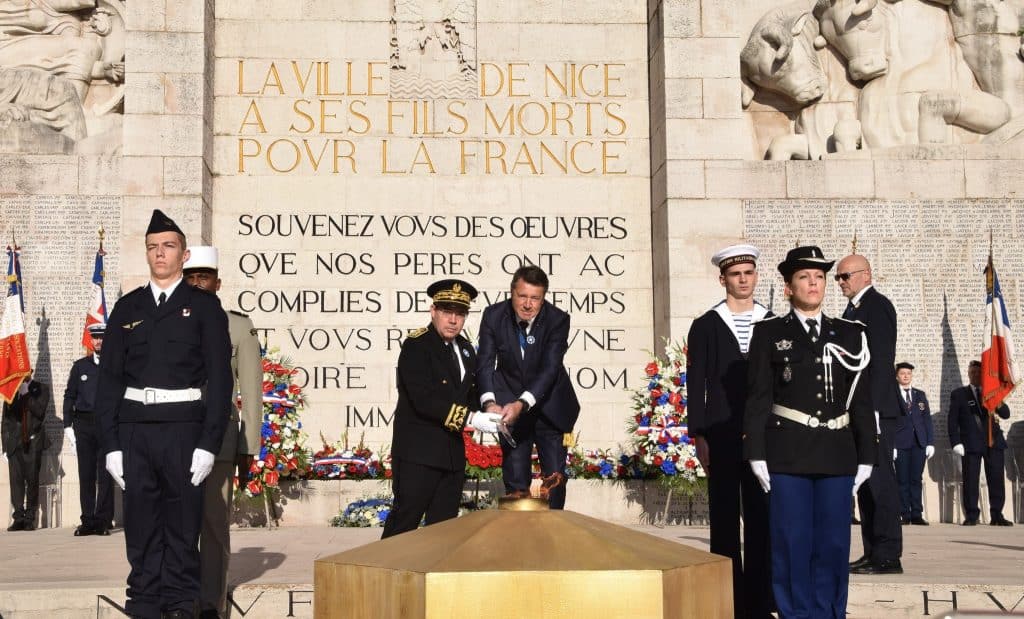 The ceremony marking the 107th anniversary of the armistice gathered numerous personalities like Christian Estrosi, the prefect of Alpes-Maritimes Laurent Hottiaux, the deputy of the first district of Alpes-Maritimes Eric Ciotti, the senator of Alpes-Maritimes Dominique Estrosi Sassone, the first deputy mayor, Anthony Borrรฉ and patriotic associations around the Rauba Capeรน Monument. All gathered in remembrance of the soldiers who died for France.