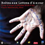 The love notes will be collected and then read by actor François Voisin during “Les Journées Poët Poët” on Saturday, March 20, 2010 at 5 pm at the Librairie Privat Sorbonne in Nice.