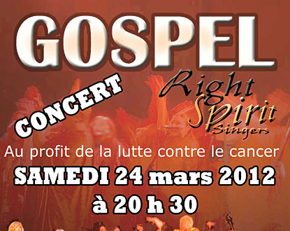 . The famous group “RIGHT SPIRIT GOSPEL Singers” is performing in NICE for a UNIQUE CONCERT IN SUPPORT OF THE FIGHT AGAINST CANCER. ADVANCE SALES: โฌ10 or โฌ15 at the door, one hour before the concert