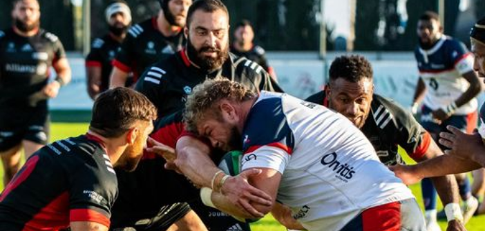 It was nothing of the sort. The match was tough and contested. Stade Niçois deservedly won by dominating the last quarter of the game, with a try from Azkhasvili in the 60th minute (when the score was tied at 18-18) and Koroi in the 79th minute.