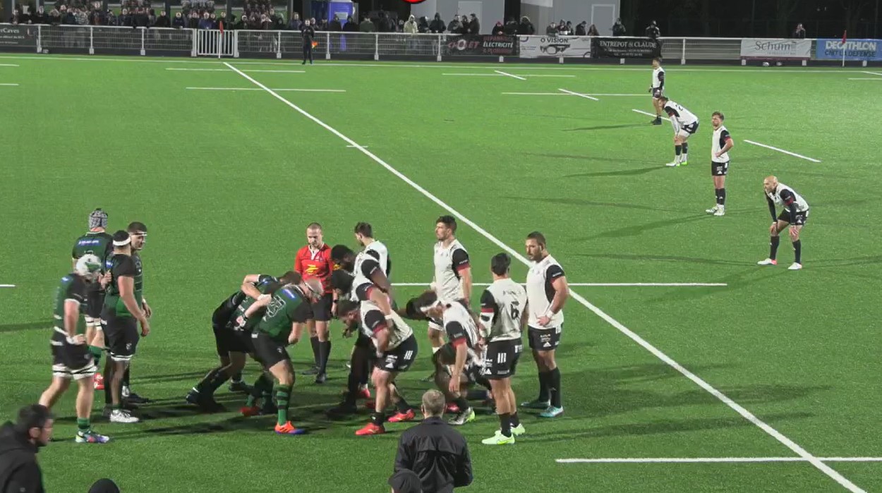 At the start of the second half, Nice began poorly, being penalized again. Baudy converted a penalty for Suresnes, who regained the lead (16-13) in the 43rd minute. As in the first half, the teams traded blows. The Niçois caught up once more with a penalty converted by Riguet (16-16) in the 50th minute. After a five-minute stoppage due to Suresnes player Marvin Woki’s injury, he was carried off on a stretcher.