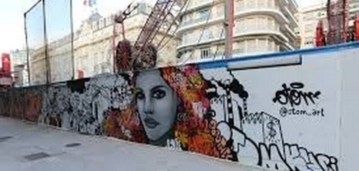 Four artists worked on nearly 80 meters of construction site hoardings at Nice Méridia.