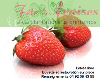 – 11 AM – 6 PM (Place Louis Frescolini): Sale of Carros strawberries, Spring Planting Expo-sale, and Local Flavors Market
