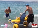 Yellow and blue with an aluminum frame, these strange devices are comparable to strollers for young children. Equipped with three wheels, the Tiralos are very easy to handle, as explained by Jonathan, one of the three lifeguards who assist the users: “The Tiralos are very easy to maneuver, people can transfer from their wheelchair to the Tiralo without any difficulty, the armrests are removable and serve as floats, there is no extra effort required for the person…”. This system, improved each year, is a godsend for disabled and mobility-reduced people: “Today, we can offer users parking spaces right next to the beach and direct access to the reception area. Everything has been planned to receive them under the best conditions…”.