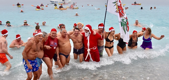 Young and old dive into the big blue (today… gray due to the rainy weather) to celebrate the end-of-year holidays a few days in advance in a convivial atmosphere.