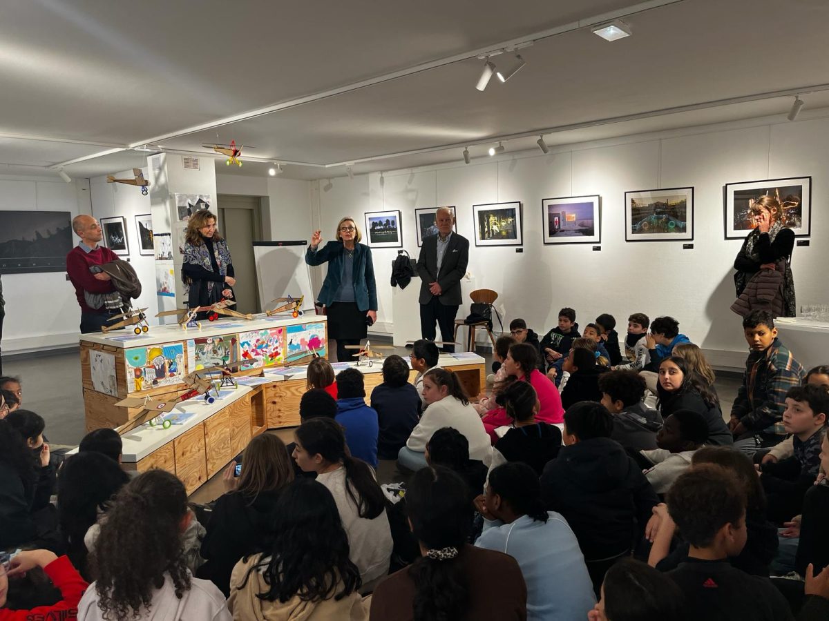This was an opportunity to work in collaboration with the author Jean-Jacques Ninon, who recently published a book about the Niรงois. Thanks to this book, the children were able to create their airplane models. During the opening, Jean-Jacques Ninon showcased his drawing skills by sketching an airplane.