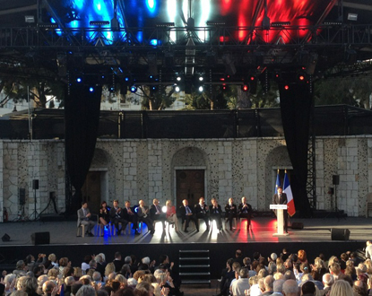 Last “public” meeting in Nice for Nicolas Sarkozy’s supporters before May 6. More than a thousand activists and elected officials expressed their unwavering support for the outgoing President at the Thรฉรขtre de Verdure in Nice, in the presence of the departmental headquarters (including elected officials and nomenklatura, the ineffable Lionel Lucca included). Given the context and the situation after the first round results, the tension was in tune with the virulent tones and a rather Wild West style.