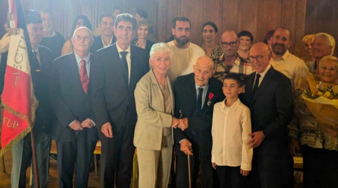 At 102 years old, René Di Fraja, a former World War II combatant, received the Legion of Honor on Thursday, October 16, from Charles-Ange Ginésy, president of the Alpes-Maritimes Department. A ceremony was held in the presence of Éric Ciotti, Michel Georges Choux, his family, and around thirty guests gathered to honor an exemplary life.