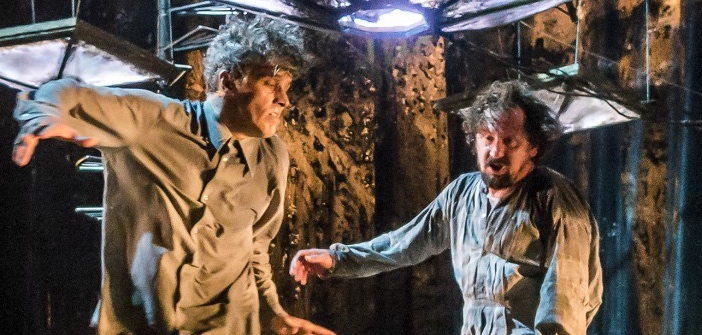 A singer, Mariama, launches into long melodies over this imaginary landscape. A “tough nut” who can’t stand wrong notes and a sort of little street kid, a Peter Pan, our James Thierrée, confront each other. The latter tries to get rid of a violin after playing it, but it sticks to his fingers.