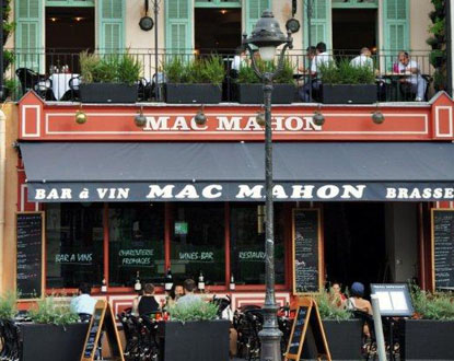 The concept of Mac Mahon: at every time of the day, a suitable response for the customer: breakfast in the morning, club sandwiches or desserts in the afternoon, at 6 PM aperitif/tastings of socca, pizzette, sliced ham, and other refined appetizers in the trattoria spirit, and of course upstairs lunch and dinner at the restaurant.