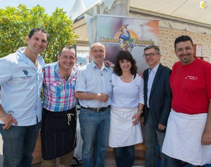 Behind the workstations: Laurence Stramigioli from the culinary blog [Variations Gourmandes](https://variations-gourmandes.blogspot.fr/), Daniel Silvetti, Chef at the restaurant Lu Fran Calin, Luc Salsedo Chef of the [restaurant of the same name](https://www.restaurant-salsedo.com/fr_FR/), and Franck Viano, winner of the show “Come Dine with Me”. Hardly had they prepared the cutting boards and various ingredients when the chopping of vegetables began in front of an ever-growing number of spectators.