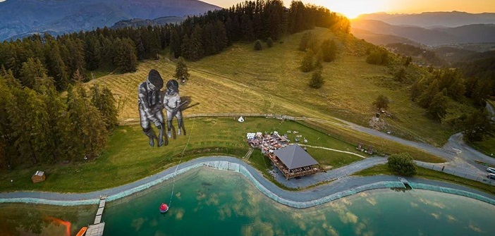 This ephemeral work aims to leave a lasting impression without impacting nature, according to the artist Saype: “My 100% biodegradable painting, made from natural pigments, will fade with the growth of the grass, prompting us to reflect on our relationship with nature.”