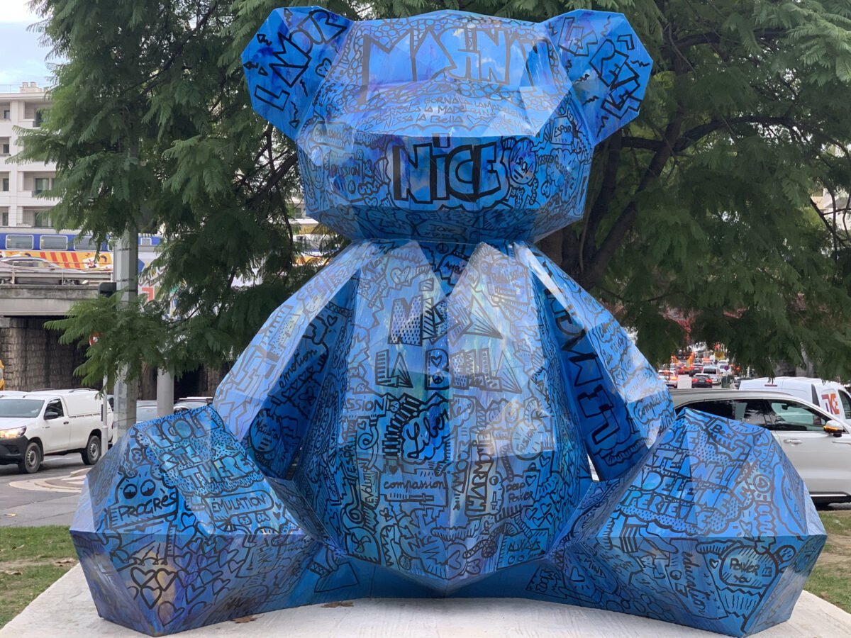 A childlike blue bear sculpture now stands in the Magnan district of Nice. Here’s what it’s all about.